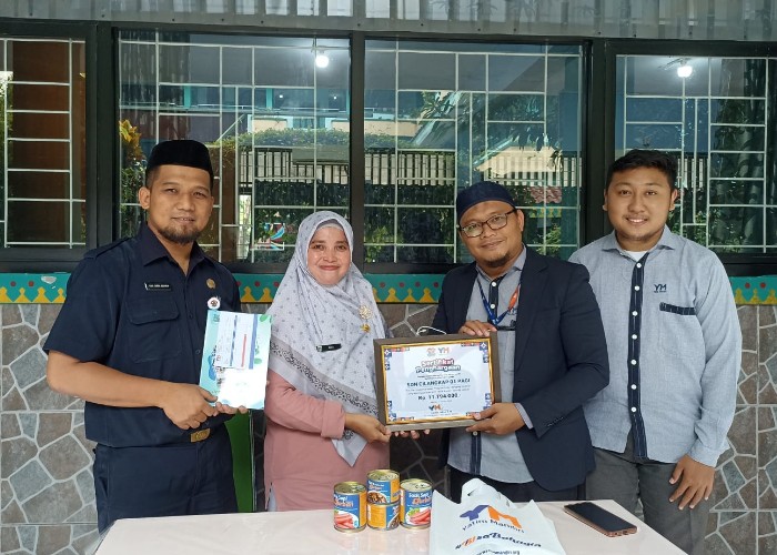 Penyerahan bantuan dilakukan oleh Muyassaroh selaku Lead Program Yatim Mandiri Jember, dengan didampingi Kepala Sekolah dan para guru Madrasah Ibtidaiyah As-Syofa.