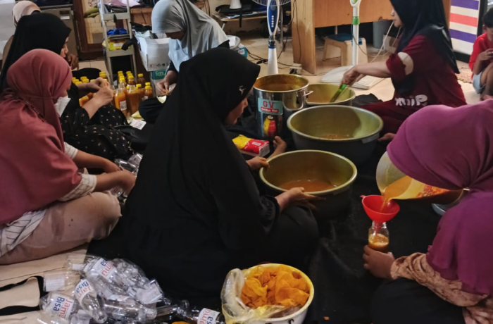 Pada pelaksanaan kali ini, produk unggulan yang dikembangkan adalah jamu kunyit asem, minuman tradisional yang dikenal memiliki banyak manfaat kesehatan. Proses produksi dilakukan secara bersama-sama dengan memperhatikan kebersihan, kualitas bahan, serta standar pengemasan agar produk layak dan aman dikonsumsi.
