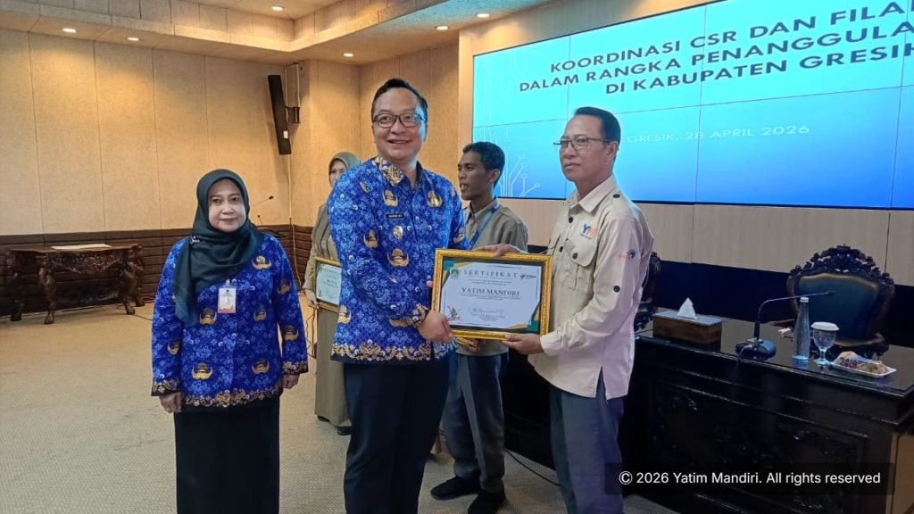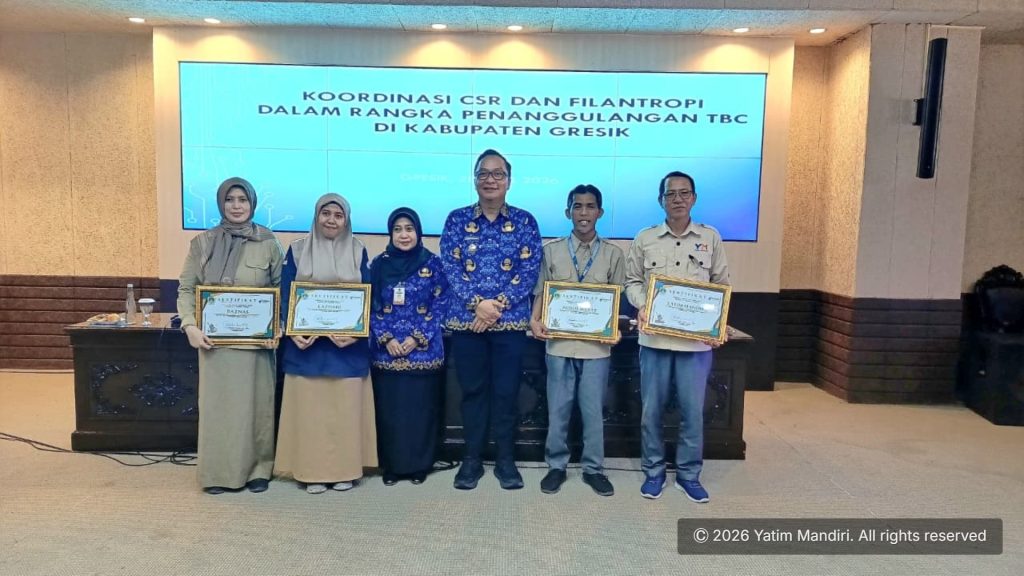Gresik, YM News – Yatim Mandiri menerima penghargaan dari Pemerintah Kabupaten Gresik atas kontribusinya dalam kolaborasi penanganan pasien Tuberkulosis (TBC), Rabu (29/4/2026). Penghargaan ini menjadi bentuk apresiasi atas keterlibatan aktif lembaga sosial tersebut dalam mendukung upaya pengendalian TBC di daerah.