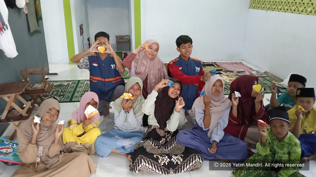 Sesi membuat origami di Sanggar Rejoso menjadi momen yang paling dinanti. Anak-anak tampak kompetitif dalam menghasilkan karya terbaik, sekaligus melatih fokus dan ketekunan mereka. “Melalui kegiatan ini, kami berharap anak-anak tidak hanya merasa bahagia, tetapi juga semakin terasah kreativitas dan semangat belajarnya,” ungkap perwakilan Yatim Mandiri.
