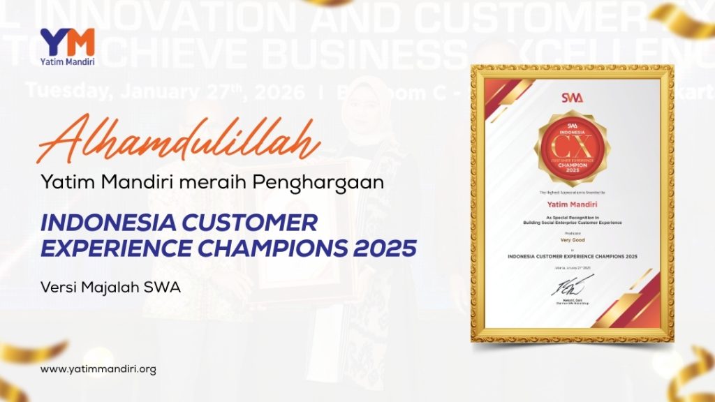 Jakarta, YM News – Di awal tahun 2026, Yatim Mandiri memulainya dengan mengukir sebuah prestasi baru dalam bidang layanan pada pelanggan dan masyarakat. Prestasi ini diraih dalam ajang Indonesia Customer Experience Championship 2025 Majalah SWA yang digelar pada 27 Januari 2026 di Shangri-La Hotel Jakarta.