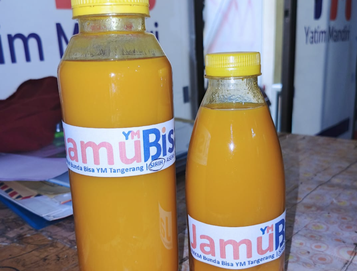Salah satu produk dari olahan kelompok Bunda Mandiri Sejahtera (BISA) Laznas Yatim Mandiri Tangerang, yaitu Produk Olahan Jamu Kunyit Asem. Produk ini dipilih selain dari bahan-bahan yang mudah di dapat, serta juga dapat membantu pedagang sayur di sekitar kantor, tentunya produk ini juga kaya akan manfaat salah satunya adalah melancarkan pencernaan.