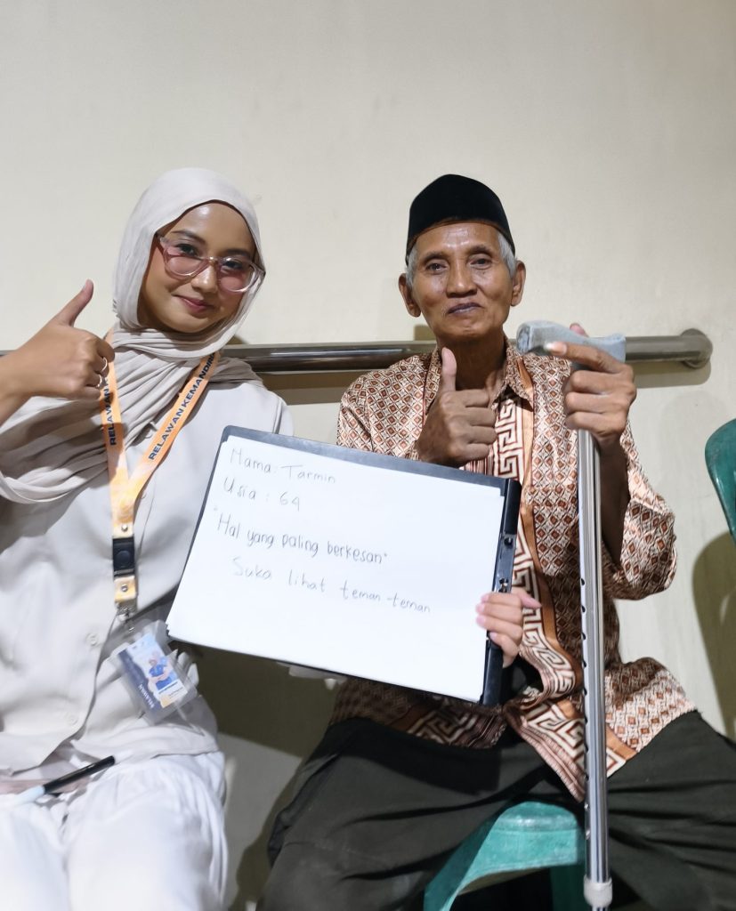 Setelah berbuka puasa, kegiatan dilanjutkan dengan sesi wawancara bersama para lansia. Dalam kesempatan itu, para lansia menyampaikan berbagai harapan dan doa, terutama terkait kesehatan, kebahagiaan, serta perhatian yang terus hadir di masa mendatang. Kegiatan kemudian ditutup dengan sesi dokumentasi bersama sebelum seluruh rangkaian acara berakhir. “Kami senang bisa berkumpul seperti ini. Semoga selalu diberi kesehatan dan masih bisa bertemu di Ramadhan berikutnya,” tutup salah satu anggota Rekan memberi harapan.