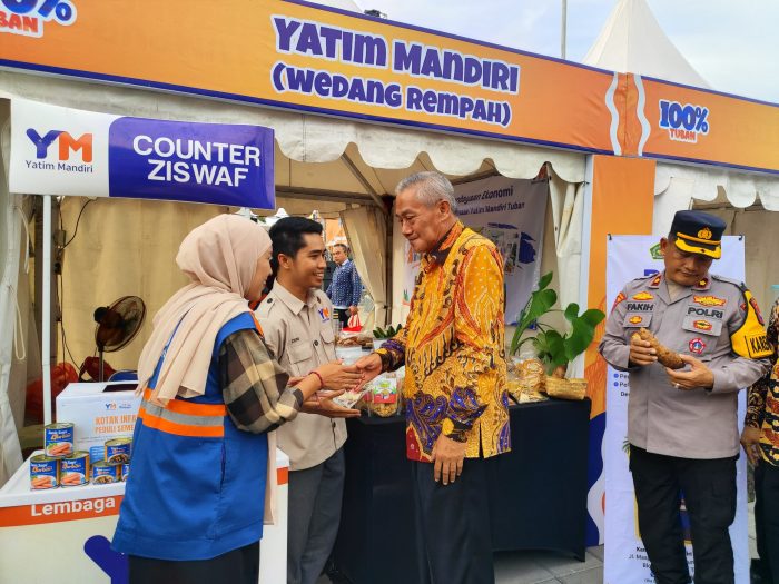 Wakil Bupati Tuban, Bapak Drs. Joko Sarwono meninjau sejumlah stan peserta, termasuk stan Yatim Mandiri.