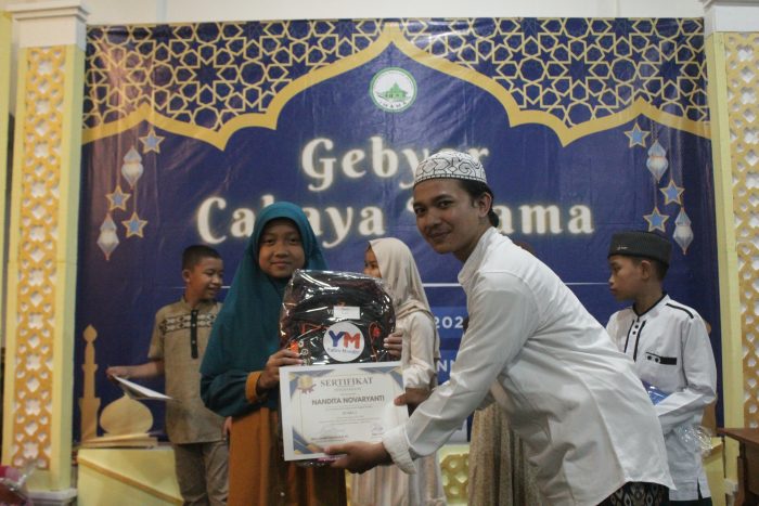 Bandung, YM News – Yatim Mandiri Bandung berkolaborasi dengan Ikatan Remaja Masjid IMAMA Annajah menyalurkan bantuan Alat Sekolah Ceria (ASA), Al-Qur’an dan sarung pada kegiatan Gebyar Cahaya IMAMA (GCI) Edisi Isra Mi’raj. Kegiatan ini diselenggarakan sebagai bagian dari peringatan peristiwa Isra Mi’raj Nabi Muhammad SAW.