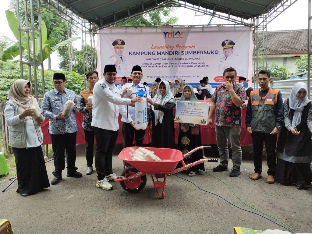 Probolinggo, YM News – Lembaga Amil Zakat Nasional (Laznas) Yatim Mandiri sukses menggelar Launching Kampung Mandiri Sumbersuko “Integrated Farming Mushroom Project” di Desa Sumbersuko, Kecamatan Dringu, Kabupaten Probolinggo, Jawa Timur, pada Rabu (28/1/2025). Program ini menjadi bagian dari upaya berkelanjutan Yatim Mandiri dalam mendorong kemandirian ekonomi perempuan, khususnya bunda yatim dan dhuafa, melalui penguatan sektor pertanian jamur.