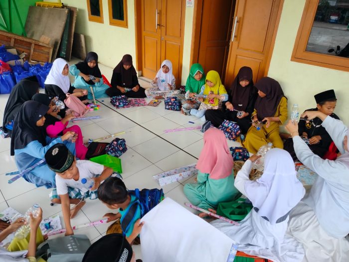 Anak-anak sedang mengikuti games membuat kerajinan tangan.